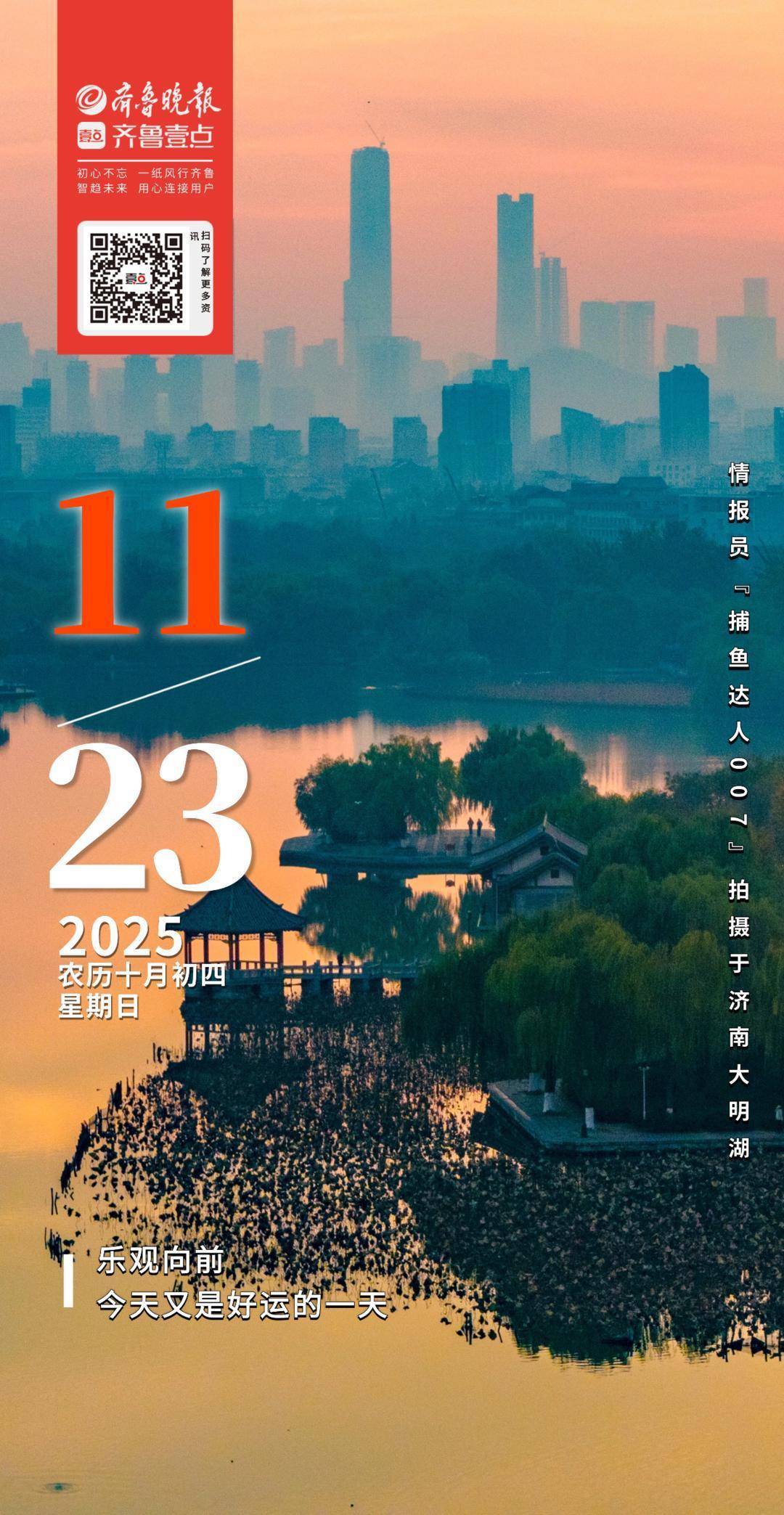 冬日济南大明湖霞光铺展,天水相融,漾开一片暖红。静谧湖面倒映漫天霞光,一叶小船轻划,搅碎满湖潋滟。湖岸林木斑斓、植被尚盛,亭台楼阁错落其间,古韵悠悠。晨练者打拳、行人闲步,皆在清冽空气里,沉醉于这份天光水色的静谧与绚烂,尽览冬日的鲜活惬意。