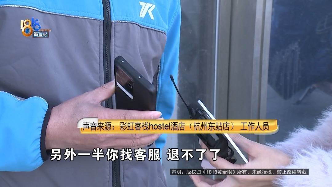 彩虹客栈hostel酒店(杭州东站店) 工作人员:为什么只能退一半,你可以叫他问客服。