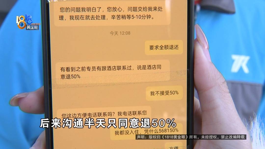 张先生反映在平台上定好的房间到现场发现一团乱麻,还不能全额退款。