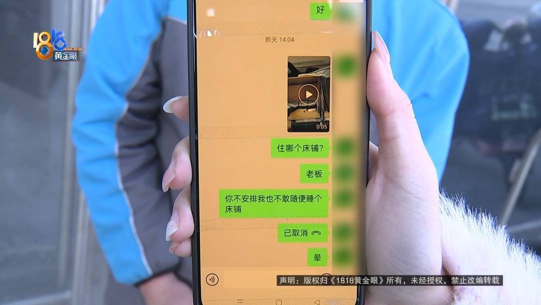 张先生:正常来讲都是他们安排的,他们指定你睡哪个床铺,有号的嘛。打电话给他,始终通了没人接,发信息也不回。