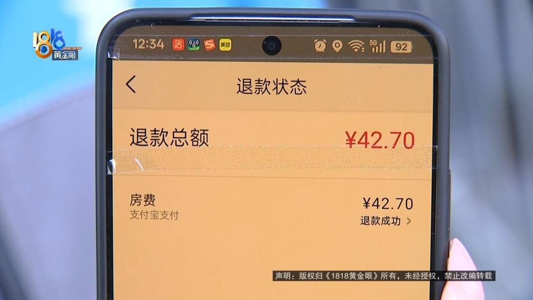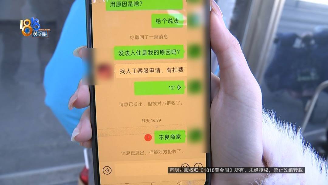 采访当天,平台显示已经退回了42.7元的房费,张先生不能接受,他的微信消息也被商家拒收了。